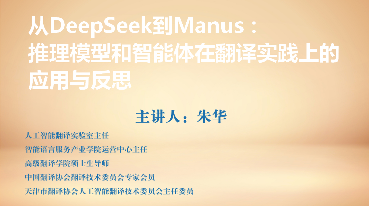 讲座预告:从DeepSeek到Manus:推理模型和智能体在翻译实践上的应用与反思
